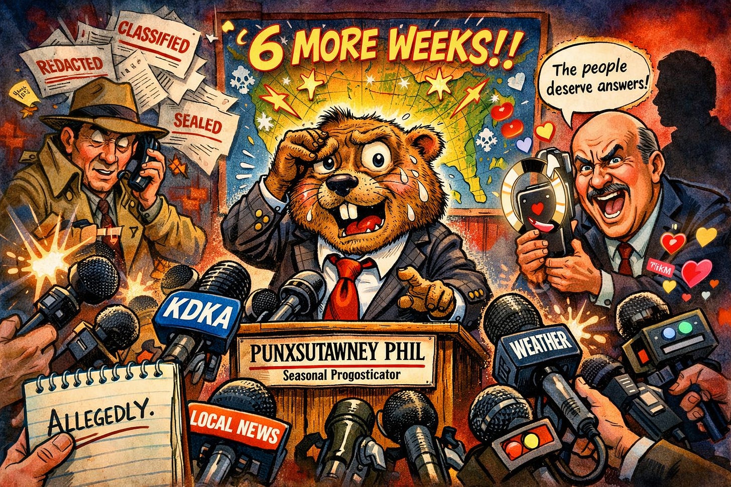 5. While drunk at a local dive bar, Punxsutawney Phil allegedly admitted he’s been taking bribes under the table from KDKA-TV to fix the results of his Groundhog Day predictions in favor of longer winters, sparking fear in the hearts of weak-minded viewers.